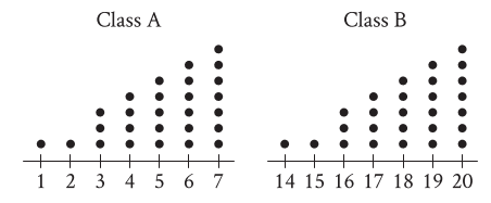 &\text{for two classes, class A and class B. Which statement best compares the standard deviations }\\