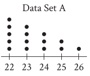 &~~~~~~~~~~~~~~~~~~~~~~~~~~~~~~~~~~~~~~~~~~~~~~~~\text{Data set A: 2, 2, 2, 5, 5, 8, 11, 11, 14, 14, 14}\\
