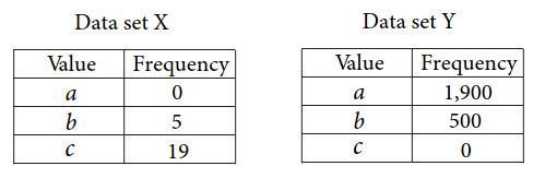 &~~~~~~~~~~~~~~~~~~~~~~~~~~~~~~~~~~~~~~~~~~~~~~~~~~~~~~~~~~~~~~~~~~~\text{Data set X: 5, 9, 9, 13}\\&~~~~~~~~~~~~~~~~~~~~~~~~~~~~~~~~~~~~~~~~~~~~~~~~~~~~~~~~~~~~~~~~~~~\text{Data set Y: 5, 9, 9, 13, 27}\\\\