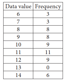 &\text{The table shows the frequency of each value in a data set.}\\\\