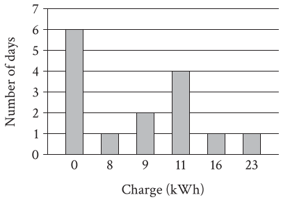 \(\text{For how many of these 15 days did the battery receive a charge of 0 kWh?}\)