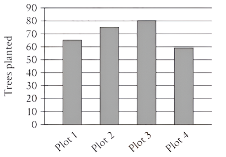 &\text{The bar graph shows the number of trees planted for 4 separate plots of land on a tree}\\