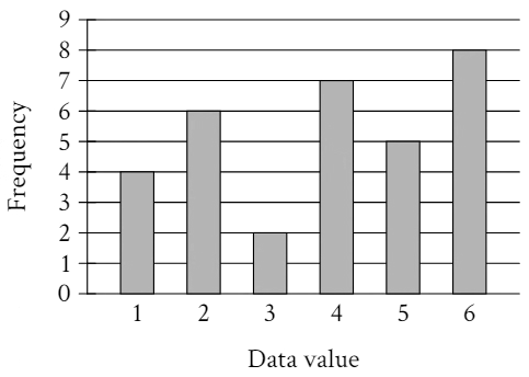 \(\text{The bar graph shows the frequency of each data value in a data set.}\)