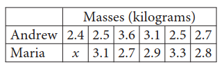 &\text{Andrew and Maria each collected six rocks, and the masses of the rocks are shown in the table }\\