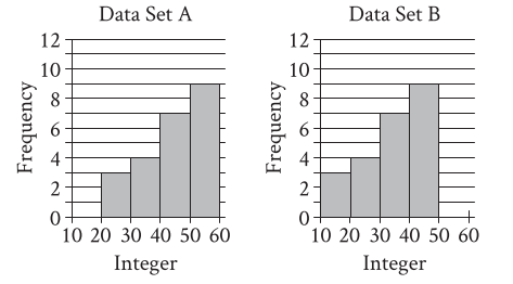 &\text{Two data sets of 23 integers each are summarized in the histograms shown. For each of }\\
