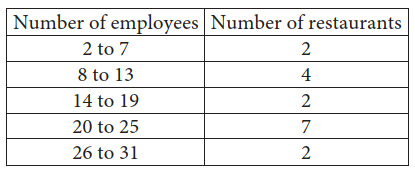 &\text{The table shown summarizes the number of employees at each of the 17 restaurants }\\&\text{in a town.}\end{aligned}\)