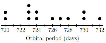 &\text{A data set of the orbital periods, rounded to the nearest whole number of Earth days for}\\