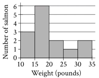 \(\begin{aligned}&\text{The histogram summarizes a data set of the weights, in pounds, of 14 salmon. If an}\\&\text{additional weight of 85 pounds is added to the original data set to create a new data set of 15}\\&\text{weights of salmon, which of the following measures must be greater for the new data set}\\&\text{than for the original data set?}\\\\