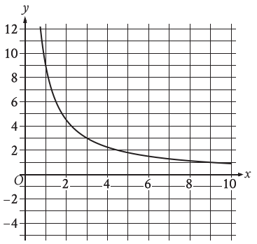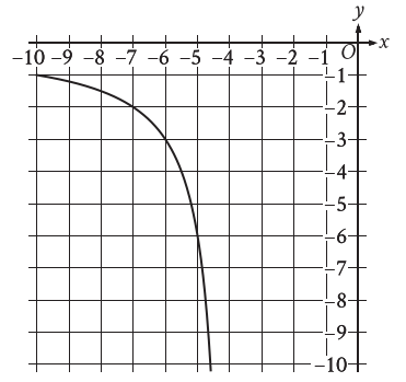 &\text{The rational function }f\text{ is defined by an equation in the form }f(x)={\frac{a}{x+b}},\\&\mathrm{where~}a\mathrm{~and~}b\text{ are constants}.\text{ The partial graph of }y=f(x)\text{ is shown. If}\\&g(x)=f(x+4),\text{which equation could define function }g?\end{aligned}\)