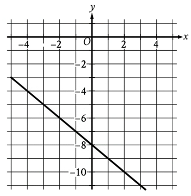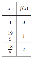 &\text{For line }h,\text{ the table shows three values of }x\text{ and their corresponding values of }y.\\&\text{Line }k \text{ is the result of translating line }h\mathrm{~down~}5\text{ units in the }xy\text{-plane. What is the}\\&x\text{-intercept of line }k?\end{aligned}\)