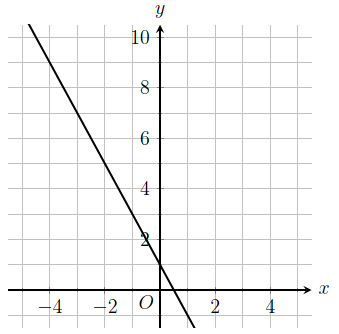 &\text{The graph of the linear function }y=f(x)+11\text{ is shown. If }c\text{ and }d\text{ are positive constants,}\\&\text{which equation could define }f?\end{aligned}\)