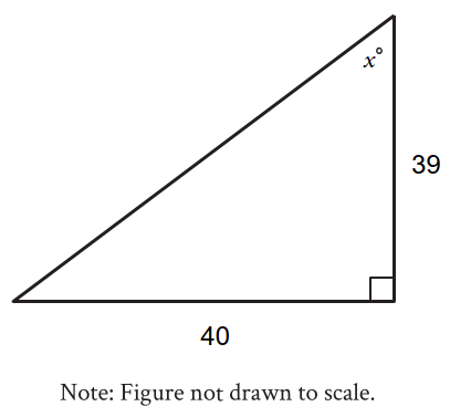 \(\text{In the right triangle shown, the value of }\tan x\text{°} \text{ is }\frac{c}{39}.\text{ What is the value of }c?\)