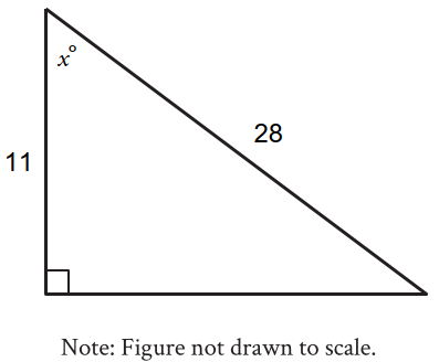 \(\text{In the triangle shown, what is the value of }\cos x\text{°} ?\)