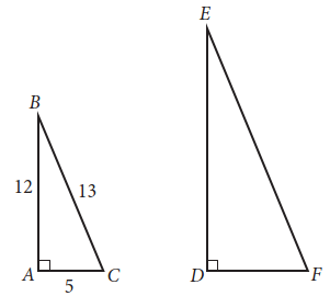 &\text{angles }C\text{ and }F\text{ are right angles. The length }\overline{AB}\text{ is }2.4\text{ times the length of }\overline{DE}.\text{ If}\\