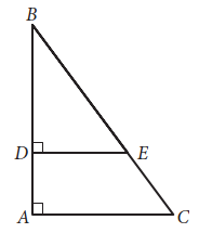 \(\text{In the figure above,}\tan B=\frac{3}{4}.\text{ If }BC=15\text{ and }DA=4\text{, what is the length of }\overline{DE}?\)